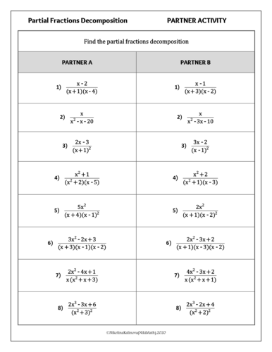 Partial Fractions Decomposition Teaching Resources | TpT Assessing your PreCalculus Students' skills with decomposing Partial Fractions has never been easier. This digital resource which can be uses as an Quiz, HW, or Paperless worksheet is designed with Google Forms™ which means it is NO PREP for you. There are 12 multiple choice questions which will be graded automatically for you.