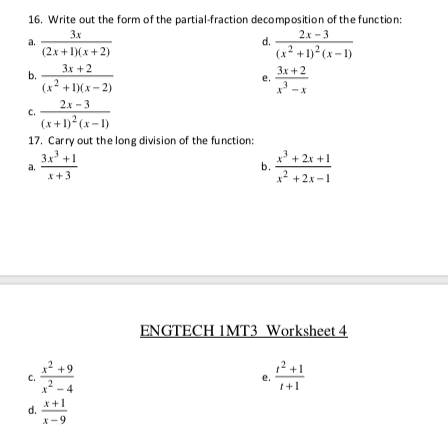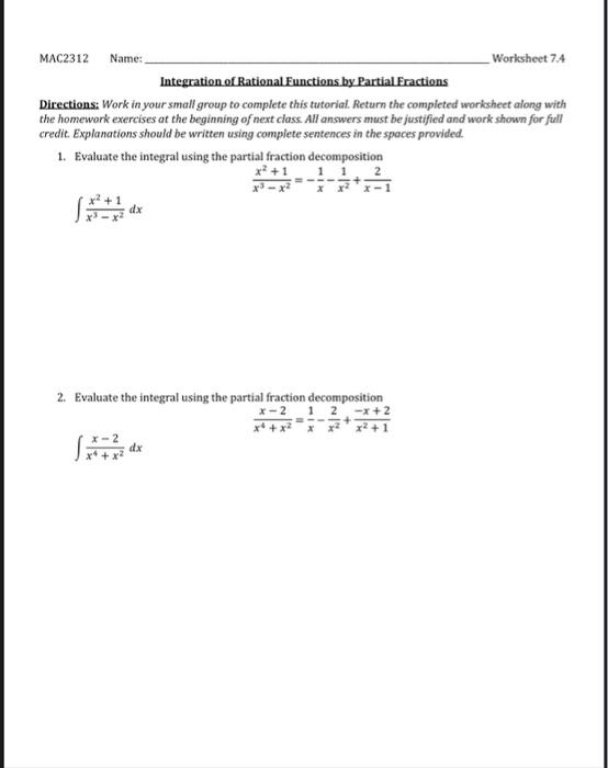 Partial fraction decomposition worksheet with answers