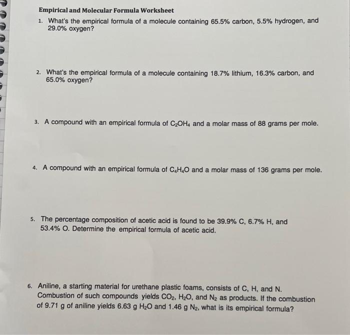 Percent composition and empirical formula worksheet