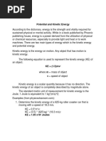 Potential_and_Kinetic_Energy_Worksheet_2_1 (4) (1).pdf Potential and Kinetic Energy Worksheet Kinetic Energy (KE) = ½ mass times velocity squared KE = ½ mv 2 Potential Energy (PE) = mass times the acceleration due to gravity times height PE = mgh = N*h (g= 9.8 m/s 2) 1 Newton (N) = 1kg*1m/s 2 or 1kgm/s 2 1. You serve a volley ball with a mass of 2.1kg. The ball leaves your hand at 30m/s. The ball has kinetic energy. . Calculate