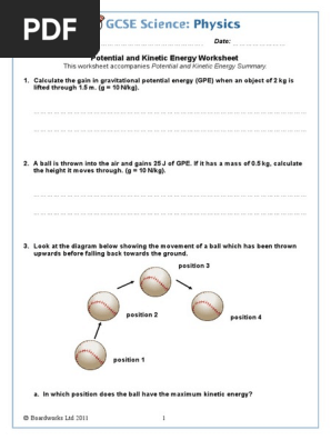 7.1 potential and kinetic energy worksheet answers