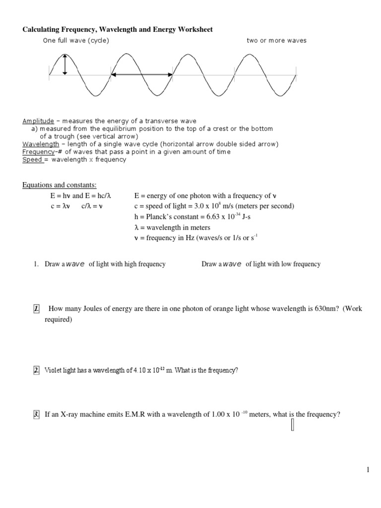 Energy frequency wavelength worksheet answers