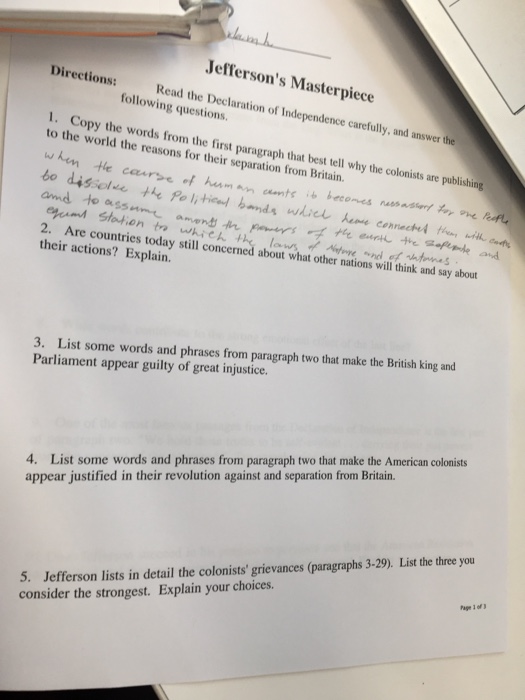 Understanding the declaration of independence worksheet answers. of Health NZ The New Zealand Ministry of Health. The Government's principal advisor on health and disability: improving, promoting and protecting the health of New Zealanders www-tc.pbs.org › pdf › 2_questions_answersQuestion Sheet for the Declaration Activity (with answers) - PBS independence was the true goal of the colonies. Others may state that since each state provided signers to the document, it was obvious that all thirteen colonies accepted it. As to the question of whether the 13 colonies could have declared independence if they weren’t unanimous, answers will vary. Most students might state that independence › createJoin LiveJournal Password requirements: 6 to 30 characters long; ASCII characters only (characters found on a standard US keyboard); must contain at least 4 different symbols; › files › educationAnalyze a Written Document - Archives Materials created by the ational Archives and Records Administration are in the public domain. Analyze a Written Document Meet the document. Type (check all that apply):