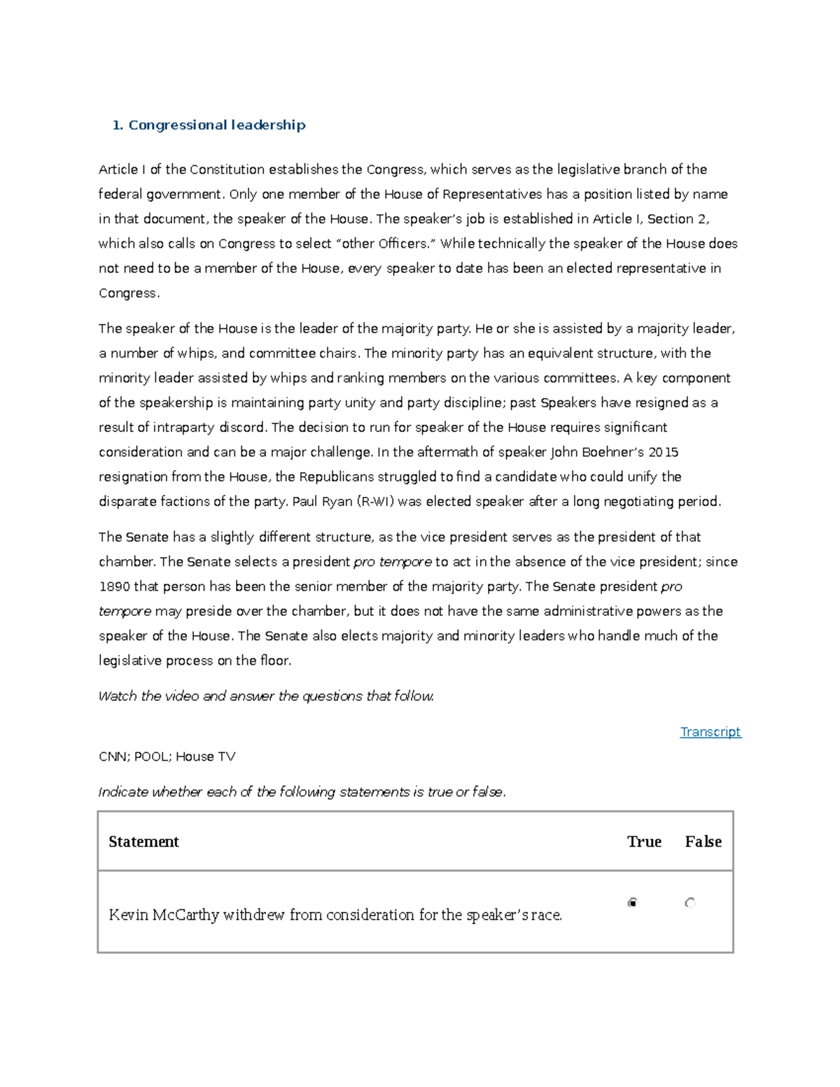 Congressional leadership worksheet answers