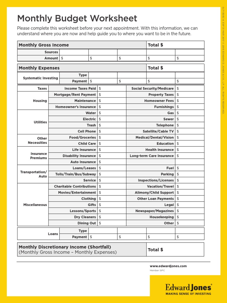 Edward jones budget worksheet