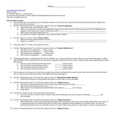 Julie Bui - Virtual Microscope Lab Worksheet | PDF ...
