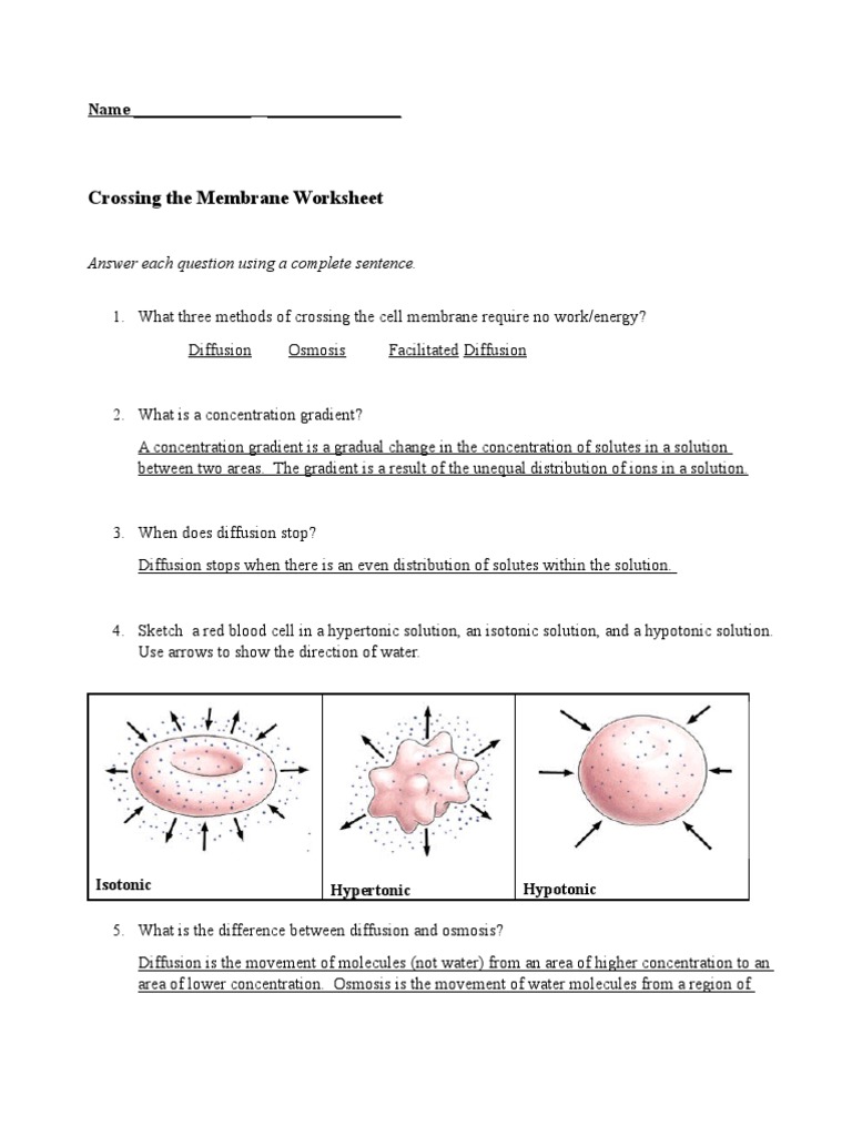 Diffusion and osmosis worksheet answers