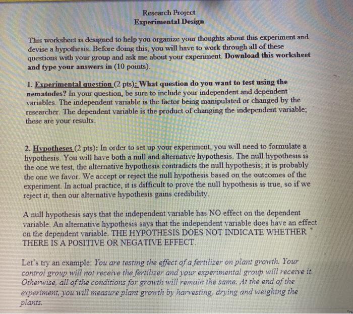 Experimental design biology worksheet