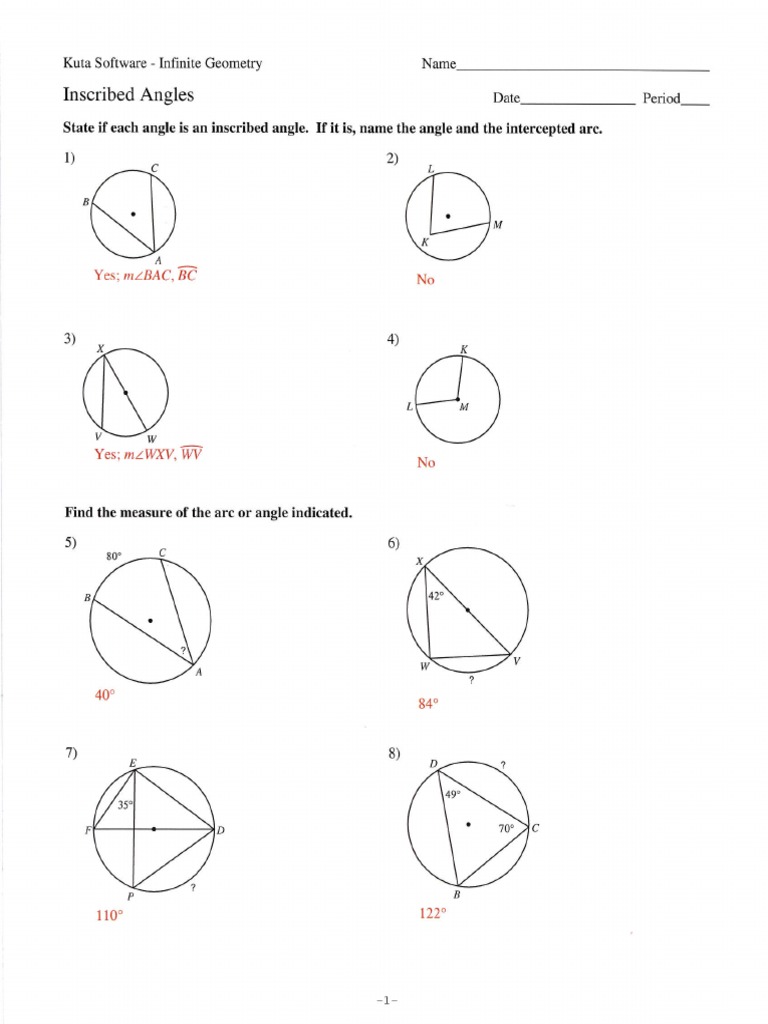 PDF Inscribed angles worksheet (with answer key) Inscribed angles worksheet (with answer key)is amath worksheet designed to help learners activate prior knowledge, understand the lesson, and practice their learned skills through a mix of math drills, reflection and evaluation, and a challenge that will help them construct their own word problem and solve it. How will the "Inscribed angles ... KutaSoftware: Geometry- Inscribed Angles Part 1 - YouTube Free worksheet at to ️ ⬅️ for more Geometry information!Please support me: ?... inscribed quadrilaterals worksheet answer key Unit 10 Circles Homework 5 Inscribed Angles - Inscribed Angles In A Circle. 9 Images about Unit 10 Circles Homework 5 Inscribed Angles - Inscribed Angles In A Circle : 15.2 Angles In Inscribed Quadrilaterals Answer Key : Proving, Inscribed Angles Worksheet Answer Key - Nidecmege and also 15.2 Angles In Inscribed Quadrilaterals Answer Key : Proving.