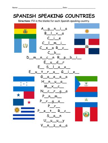 Spanish Speaking Countries Worksheet Teaching Resources | TPT Results 1 - 24 of 103+ ... Browse spanish speaking countries worksheet resources on Teachers Pay Teachers, a marketplace trusted by millions of teachers for ...