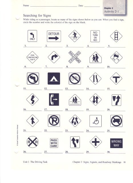 PDF Drive Right Chapter 2 - Mr. Cronin's Driving School more difficult without signs, signals, and roadway markings. To be a safe and responsible driver, you must know what signs, signals, and roadway marking$, mean. This chapter cusses these 4' controls and how to respond to them Chapter 2 Signs, Signals, and Roadway Markings 2.1 Traffic Signs 2.2 Traffic Signals 2.3 Roadway Markings