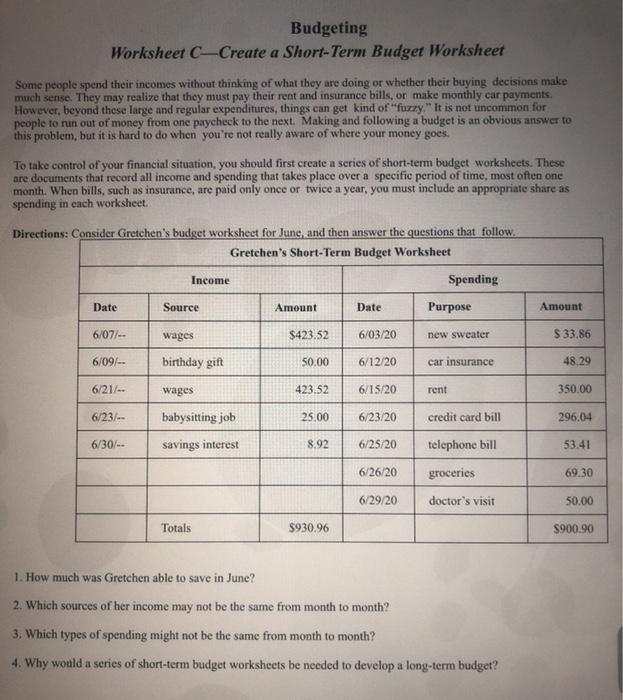 Richard Guo - Planning and Budgeting.pdf - Name: Name: _____ Financial Planning Worksheet A—Short-Term and Long-Term Goals Everyone wants to make good decisions—decisions that maximize benefits and minimize costs. However, it can be hard to make good decisions when you aren't sure what you want to achieve. That's why setting goals and creating and following a financial plan with your goals in mind is so important. Short or Long Term Goals Worksheets - worksheetplace.com Samples of short term goals are: completing a task, getting a B grade or better on a specific test, earning $20 in a week. Samples of long term goals include, getting fitter, getting better grades in math, maintaining positive and good friendships. This goal setting worksheet focuses on short and long term goals and requires actions to be stated. Short and Long Term goals worksheet - liveworksheets.com Live worksheets > English > English Language Arts (ELA) > Writing > Short and Long Term goals. Short and Long Term goals. goal setting. ID: 1101526. Language: English. School subject: English Language Arts (ELA) Grade/level: 9. Age: 15-16. Main content: Writing.