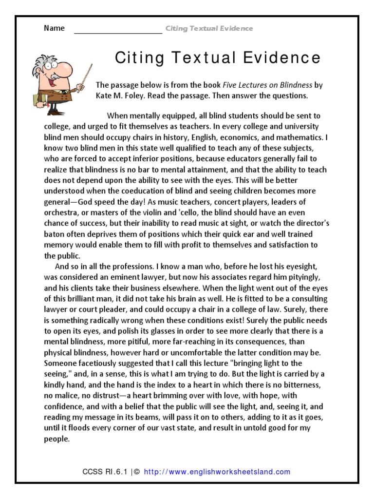 Citing textual evidence worksheet high school