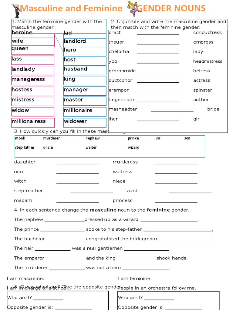 The gender of nouns spanish worksheet answers