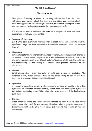 To kill a mockingbird worksheet