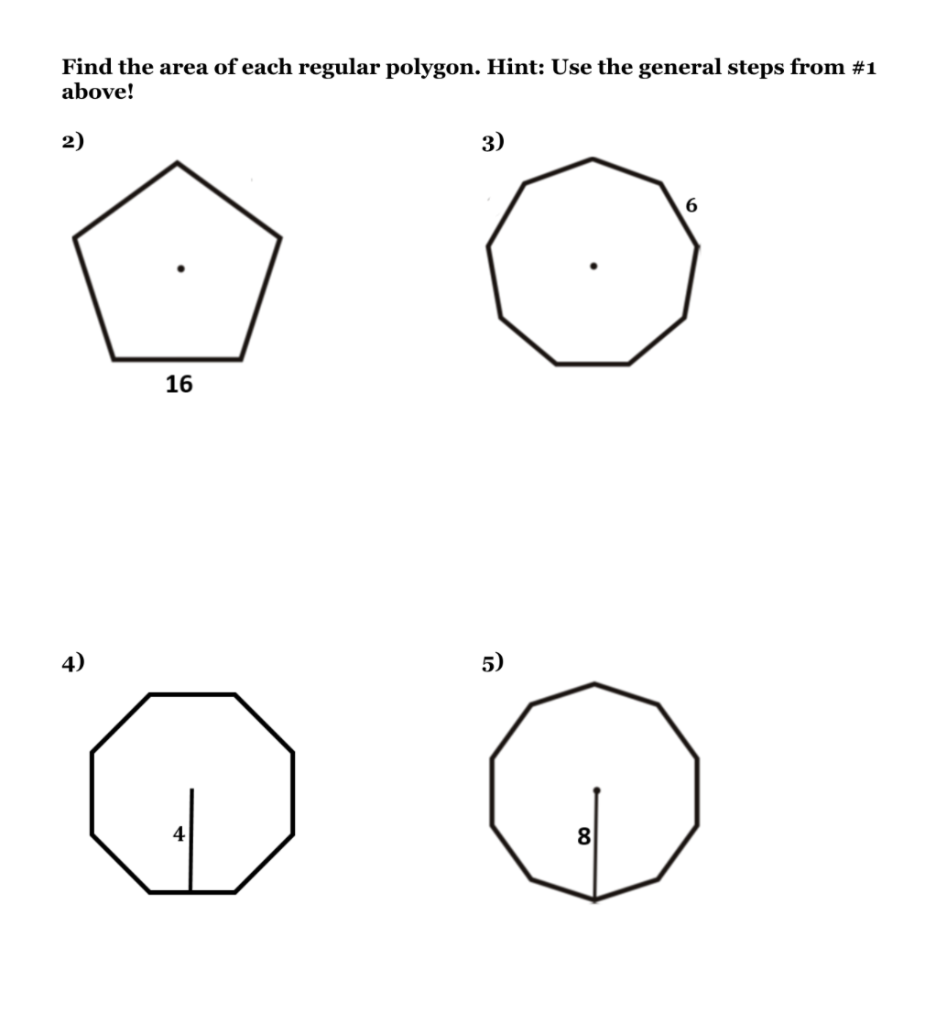 Geometry area of regular polygons worksheet. Formula, Area of Regular Polygons Examples - Cuemath The area of polygons can be found by different formulas depending upon whether the polygon is a regular or an irregular polygon. Unit: The unit of the perimeter of polygons is expressed in meters, centimeters, inches, feet, etc. The unit of the area of polygons is expressed in (meters) 2, (centimeters) 2, (inches) 2, (feet) 2, etc. Free Printable Math Worksheets for Geometry - Kuta Software Free Geometry worksheets created with Infinite Geometry. Printable in convenient PDF format. Area Worksheets Equip future architects, aeronauts, coast guards, graphic designers with this meticulously designed assemblage of printable area worksheets to figure out the area of irregular figures, area of 2D shapes like squares, rectangles, triangles, parallelograms, trapezoids, quadrilaterals, rhombus, circles, polygons, kites, mixed and compound shapes using appropriate area formulas. IXL | Learn 3rd grade math Set students up for success in 3rd grade and beyond! Explore the entire 3rd grade math curriculum: multiplication, division, fractions, and more. Try it free!