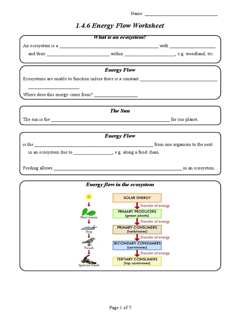 Energy Flow In Ecosystem Worksheet Teaching Resources | TPT this worksheet contains basic conceptual questions about the flow of energy within a food web, including the roles of the sun, producers, consumers, and decomposers.related products include:energy flow in ecosystems, food chains, and food webs - worksheetecosystems - worksheets bundlelife science (middle school) - worksheetsscience worksheets all …