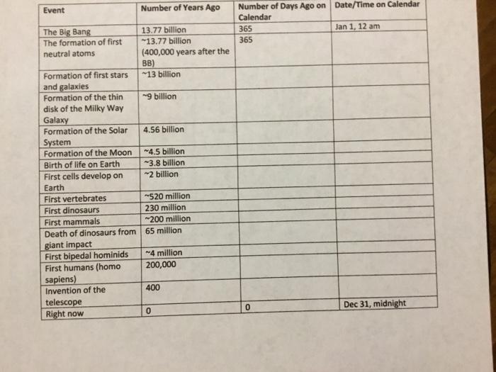 Events in the History of the Universe Worksheet Answers Answers for the worksheet on our universe are given below. Add to my workbooks 61. They can choose 20 events from a list of 35 and can add 3 of their own. 1These are some important events in the history of the universe. When youve solved for x the number of days ago from Dec. Pin On Science