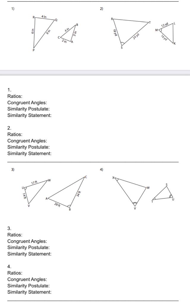 Proving triangles similar worksheet answers. proving triangles similar worksheet answers: Fill out & sign online ... Here's how it works 01. Edit your proving triangles similar worksheet online Type text, add images, blackout confidential details, add comments, highlights and more. 02. Sign it in a few clicks Draw your signature, type it, upload its image, or use your mobile device as a signature pad. 03. Share your form with others PDF Methods of Proving Triangles Similar - Day 1 BE CAREFUL!! SSS for similar triangles is NOT the same theorem as we used for congruent triangles. To show triangles are similar, it is sufficient to show that the three sets of corresponding sides are in proportion. Theorem: If the three sets of corresponding sides of two triangles are in proportion, the triangles are similar. SAS for similarity similarity of triangles worksheet answers Math Plane - Right Triangle Review. 18 Pictures about Math Plane - Right Triangle Review : Similarity Similar Right Triangles Worksheet Answers Amazing — db-excel.com, Unit 6 Similar Triangles Homework 4 Similar Triangle Proofs Answer Key and also Math #10.pdf - Similar Triangle Worksheet 1. State whether or not the. Similarity Of Triangle Worksheets - K12 Workbook *Click on Open button to open and print to worksheet. 1. Similarity Statements 2. Similar Triangles Date Period 3. Proving Triangles Similar Pre Test Answers 4. Solving Right Triangles Worksheet Answer Key 5. Similarity Criteria 6. Similar Triangles 7. STRAND I: Geometry and Trigonometry Unit 33 Congruence and ... 8.