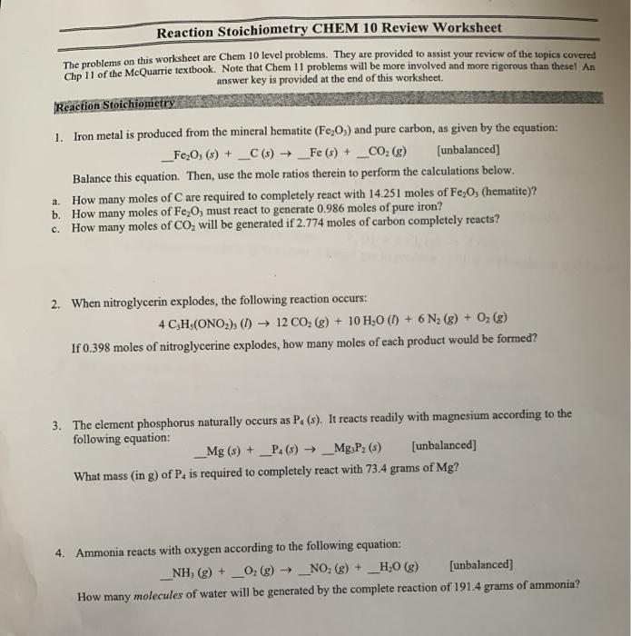 40 mole ratio worksheet chemistry answers