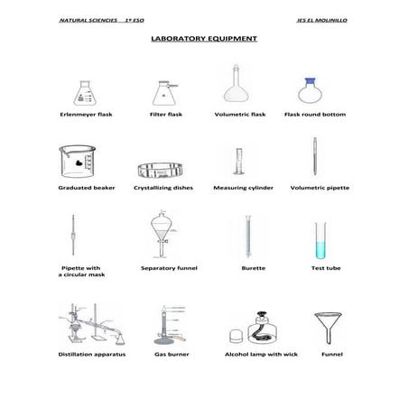 DOCX WORKSHEET - Lab Equipment - Sault Schools WORKSHEET - Lab Equipment. A number of items you will be using in the laboratory are shown below. Study this page and decide what the items may be used for, then, match the correct equipment pictured on this page to the tasks asked for on the other side of this paper. ... 09/11/2012 04:47:00 Title: WORKSHEET - Lab Equipment Subject: IPC ... Quiz & Worksheet - Chemistry Lab Equipment | Study.com About This Quiz & Worksheet Test your ability to identify and determine the functions of different laboratory equipment in the chemistry field with this interactive quiz and... Lab Equipment Worksheet - Answers.pdf - Grade 10 Science... Grade 10 Science Miss Miller Lab Equipment Worksheet Directions: Below you will find the names of different kinds of lab equipment you may encounter this year. Additionally, the functions associated with these various types of equipment are listed on the reverse side of this sheet. Using whatever resources possible (i.e. your textbook, the internet), complete the attached chart by matching the ...