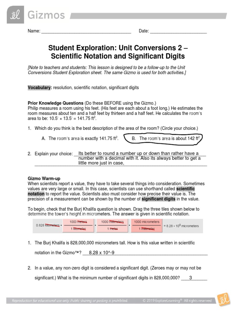 Unit 1 worksheet 2 significant figures answers. Problem set 1 answer key.PDF Problem set # 1. Chemistry 100. Measurements and Calculations (Chapter 2). 1. State the number of significant digits in each measurement. a) 2804 m 4. Science Content Standards - The National Academies Press Each group is directed to use these materials to 1) construct a pendulum, 2) hang the pendulum so that it swings freely from a pencil taped to the surface of the desk, and 3) count the number of swings of the pendulum in 15 seconds. The notetaker in each group records the result in a class chart. Ms. D. asks the students to examine the class ... ISTE 1.2.c. Students demonstrate an understanding of and respect for the rights and obligations of using and sharing intellectual property. 1.2.d . Students manage their personal data to maintain digital privacy and security and are aware of data-collection technology used to track their navigation online. 1.3 Knowledge Constructor. Students critically curate a variety of resources … PDF Name: Key Block: 1 Foundations, Measurement, and c. 0.70 m 2 significant figures d. 0.070 m 2 significant figures Rule #4: Any number that is used to count things or is a direct conversion has infinite significant figures. a. 45 desks infinite significant figures b. 60 s = 1 minute infinite significant figures c. 10 pennies = 1 dime infinite significant figures d. 4 beakers infinite ...