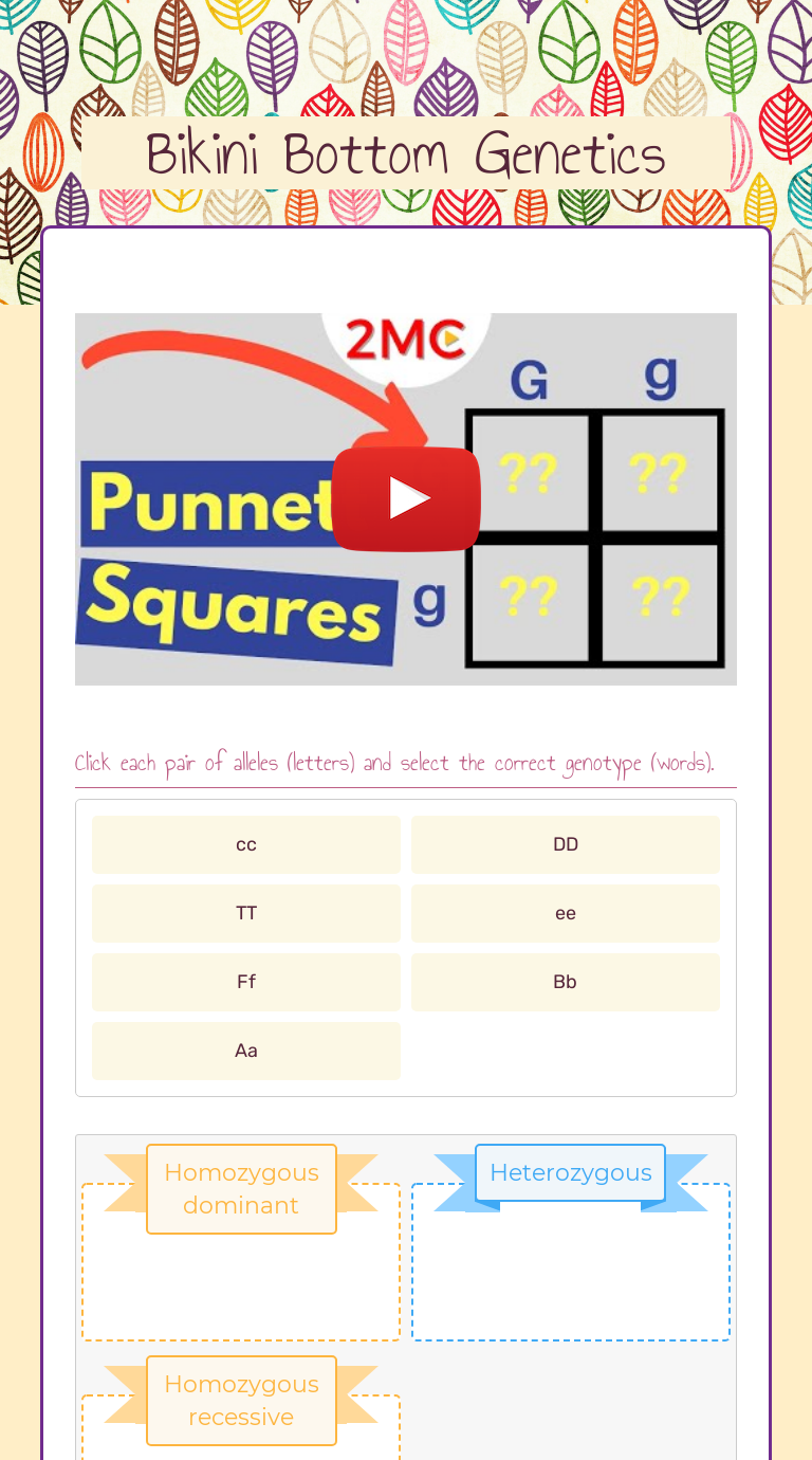 Bikini Bottom Genetics #1 | Educreations Bikini Bottom Genetics #1 by Tracy Tomm on Mar 20, 2018. Worksheet lesson. image/svg+xml. Share. Permalink. Copy. Embed. Copy. Share On. Remind Google Classroom About ...
