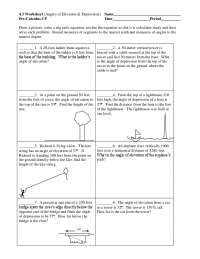 Angle of Elevation & Depression Trig Worksheet | PDF | Triangle | Angle Angle of Elevation - Read online for free. ... Open navigation menu. Close suggestions Search Search