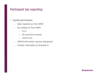 What Is Schedule D? - The Balance The Schedule D for your Form 1040 tax form is used to report capital gains and losses to the IRS. Schedule D is often used to report capital gains from the sale of stock. You file Schedule D with your individual or corporate tax return package—it is not submitted on its own. Was this page helpful? Sources