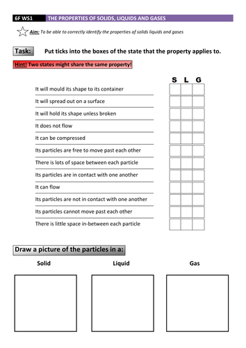 Solid Liquid Gas Worksheet Teaching Resources | Teachers Pay Teachers Structures and Properties of Matter -Solids, Liquids and Gases Worksheets. by. Worksheet Place. 4.9. (21) $5.00. PDF. A great set of learning activities, experiments and task cards for Solids liquids and gases / Structures and Properties of Matter, this set of learning activities doesn't disappoint.